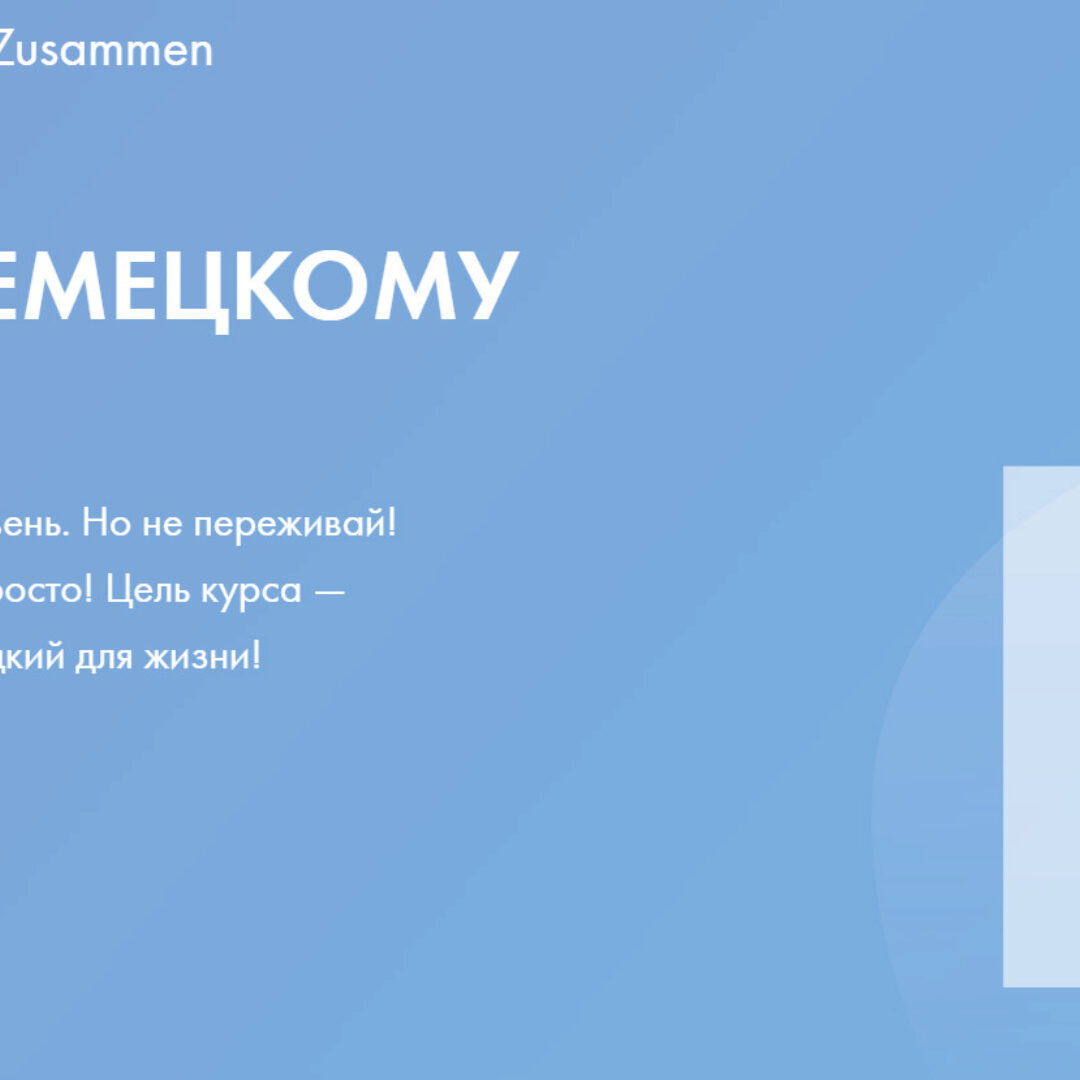 Годовой курс. 61 занятие: Занятие длится 1 академический час. Кому будет полезен курс Курс для тех, кто хочет изучать немецкий язык с нуля. Какие знания дает курс Темы начального и продвинутого уровня, возможность сдать Goethe-Zertifikat на уровень А1. Какие навыки даёт Курс Курс позволяет
