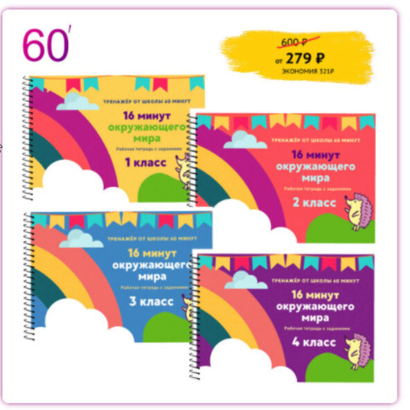 Тренажёр «16 минут чтения и пересказа» Это рабочие тетради от школы «60 минут»: для 1 класса; для 2 класса; для 3 класса; для 4 класса. С помощью миссий в тренажёре школьник закрепит навык чтения, научится понимать и пересказывать текст. Каждая рабочая тетрадь составлена под определённый возраст