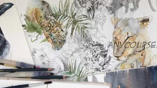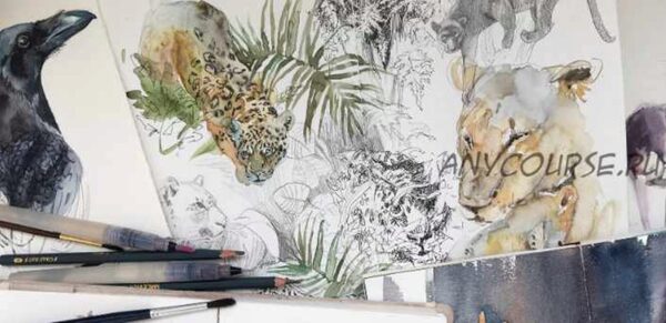 На протяжении 7 недель мы будем учиться анализировать формы, искать способы изображения различных видов шерсти, создавать быстрые наброски акварелью, ручками и карандашами. А так же потренируемся в компоновке нескольких рисунков в развороте скетчбука, что позволит вам создавать гармоничные страницы на пленэре, в зоопарке или даже по памяти!