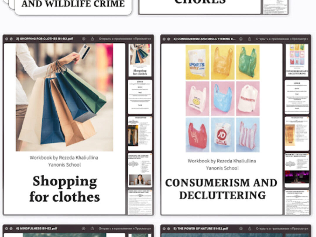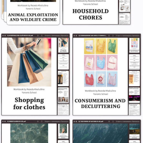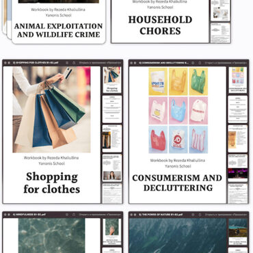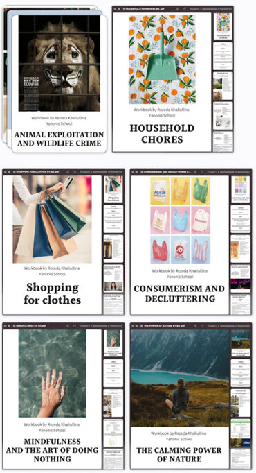- 13 рабочих тетрадей на важные для подростков и взрослых темы (потребительство, осознанность, наше отношение к природе и животным, питание)