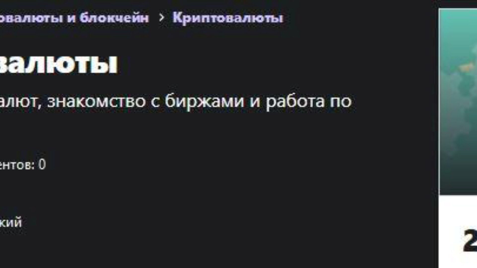 Криптовалюта Руководство по Биткоину, Ethereum и другим криптовалютам, альткойнам, NFT, DeFi, блокчейну, а также по тому, как покуп Описание Этот курс является руководством по криптовалюте для начинающих и научит вас всему, что вам нужно знать о криптовалюте: - пониманию что такое Биткоин, Эфириум