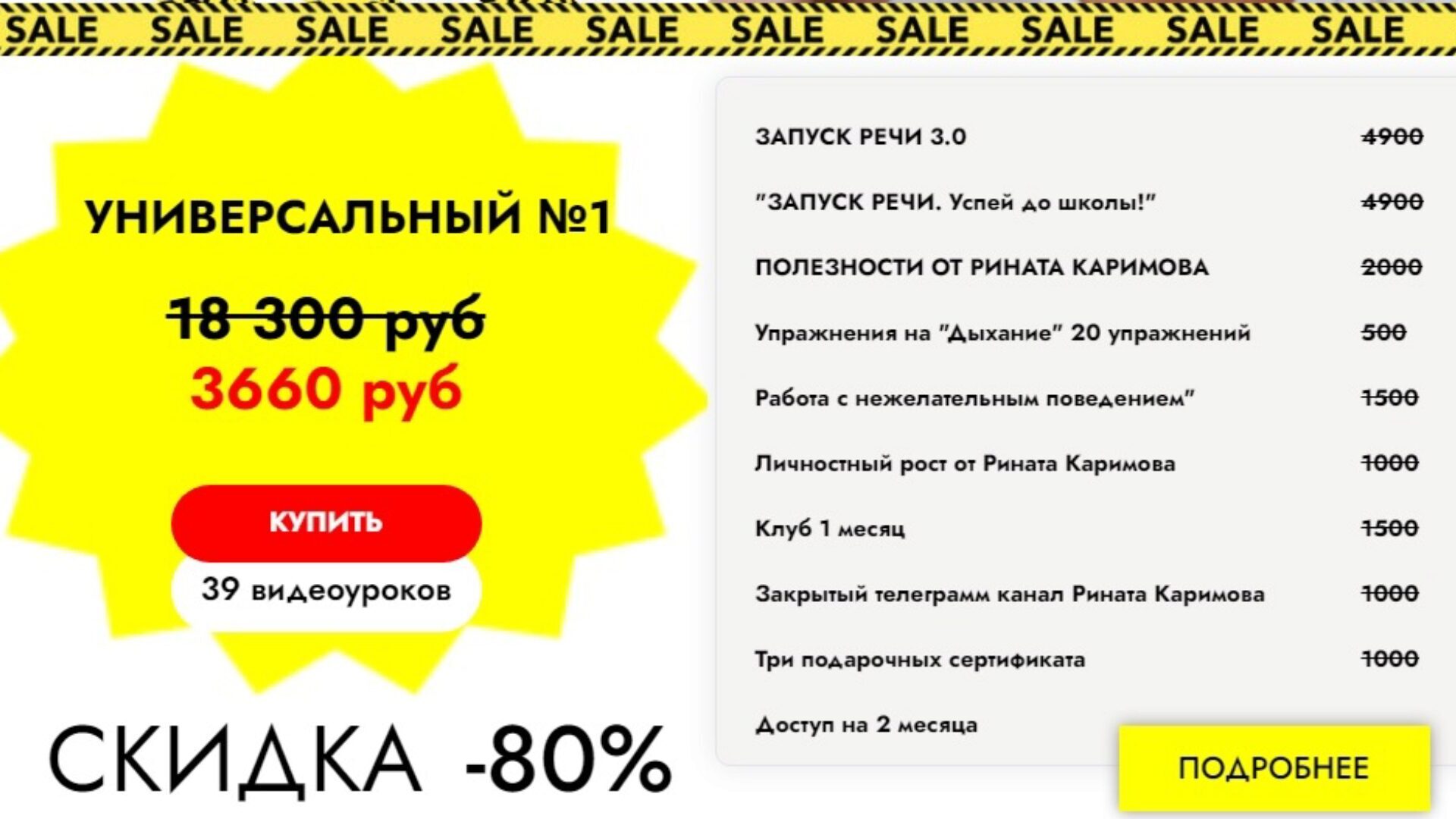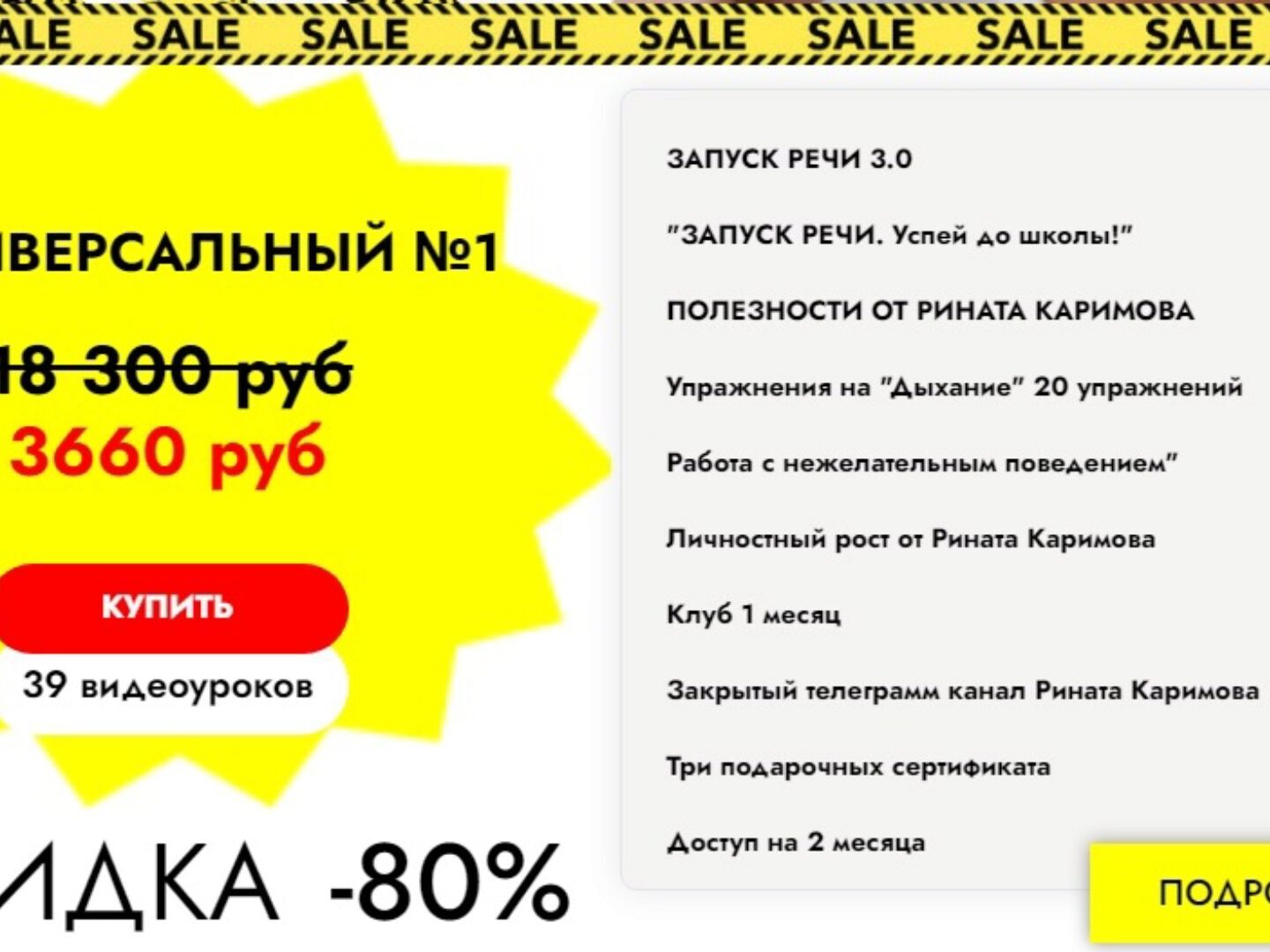Ринат Каримов Распродажа курсов по запуску речи. Тариф «Универсальный №1» слив скачать