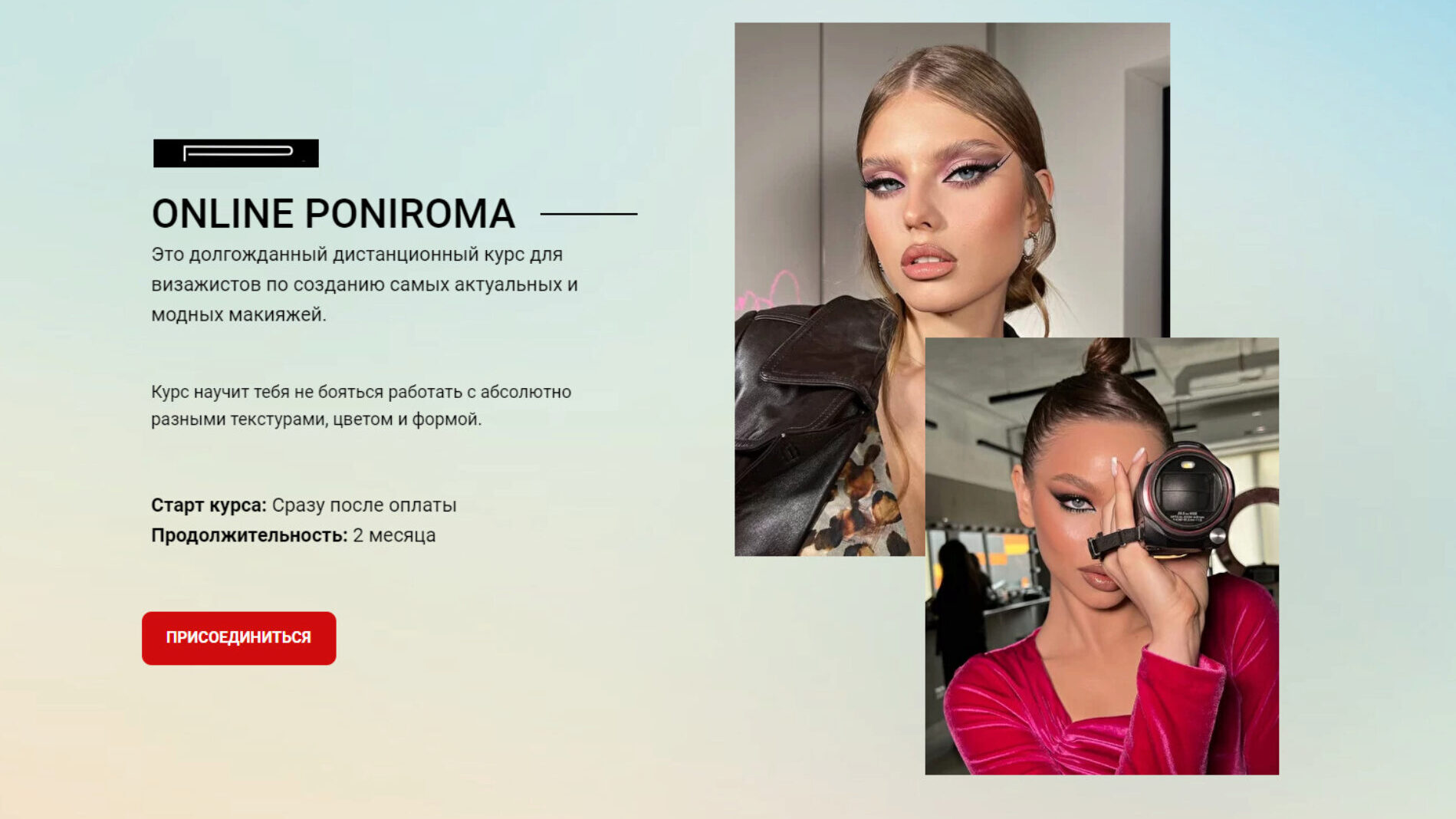 - Курс рассчитан на визажистов, имеющих базовое образование и будет отличным повышением твоей квалификации в моих авторских техниках. Если ты давно мечтал(-а) познакомиться со мной и моим творчеством поближе, то тебе точно нужен этот курс!
