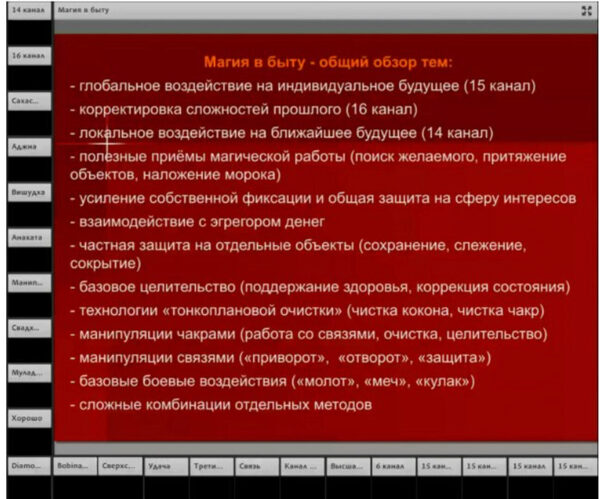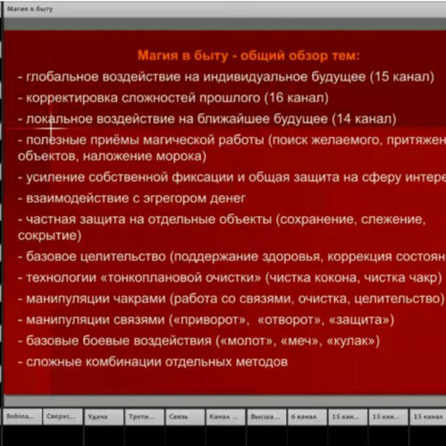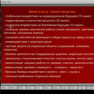 — Применение магических практик в базовых жизненных ситуациях («устройство на работу», «приворот и отворот», «остановка злоумышленника» и т.д.). Практикум.