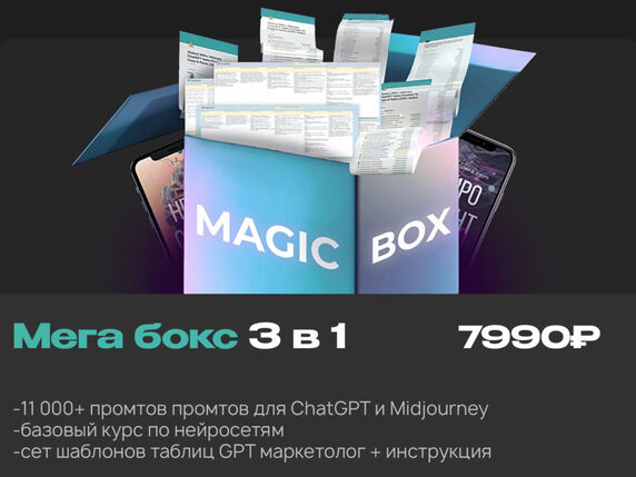 Этот набор специально создан для того, чтобы облегчить вам погружение в мир искусственного интеллекта и начать использовать его в своей работе. Приобретая Мегабокс, вы получаете: