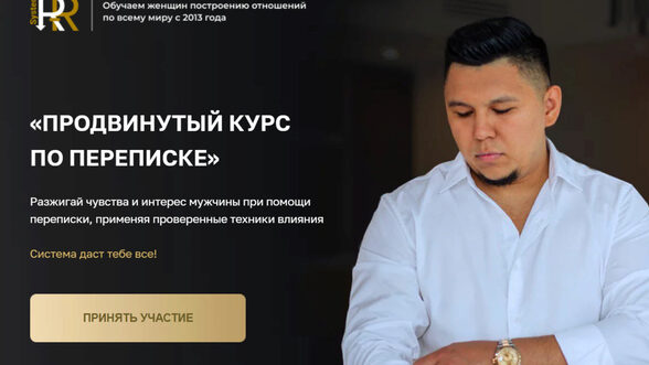 Новая программа Рустама Резепова по отношению с мужчинами. Цена: 29900 рублей. Резепов Рустам - один из известных в России специалистов по отношениям между женщиной и мужчиной. Автор 3 книг, 6 тренингов и более 200 ви део уроков для женщин по отношениям с мужчинами (знакомство, влюбление,