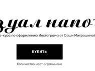 Визуал наповал Видео-курс по оформлению Инстаграма от Саши Митрошиной Старт ближайшего потока- 10 апреля Длительность: 1 месяц #STAYHOME Научим делать классный визуал в домашних условиях Преимущества курса:-Короткие видео-лекции (от 5 до 20 минут), которые можно смотреть за завтраком Задания,