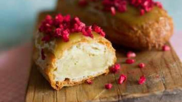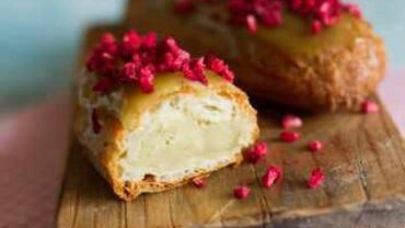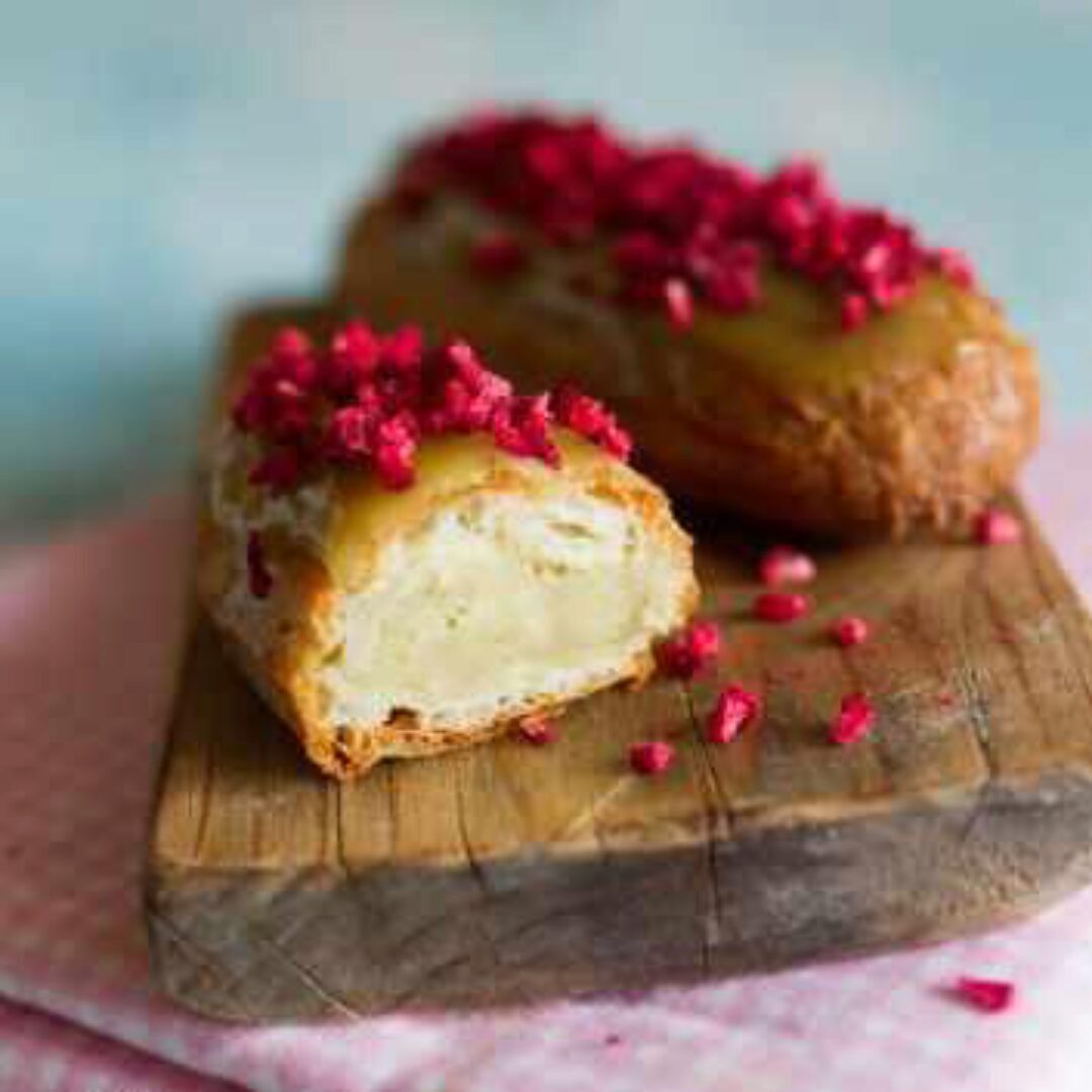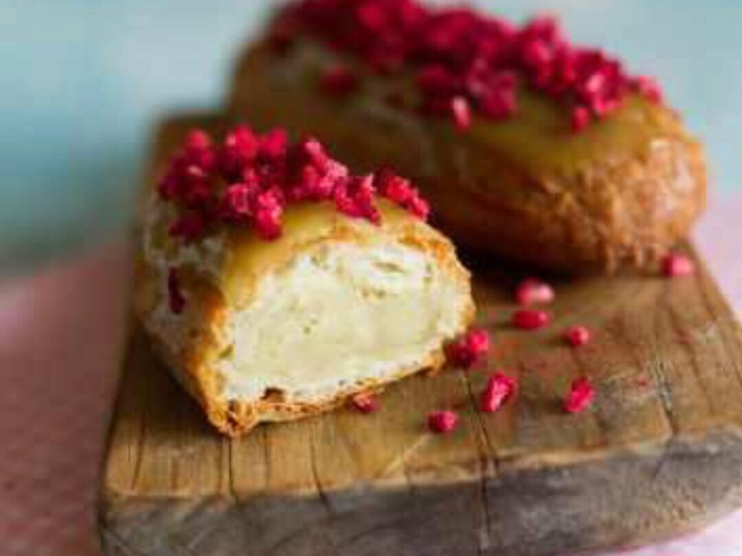 - Эклеры с малиновым кремом и глазурью на белом шоколаде