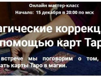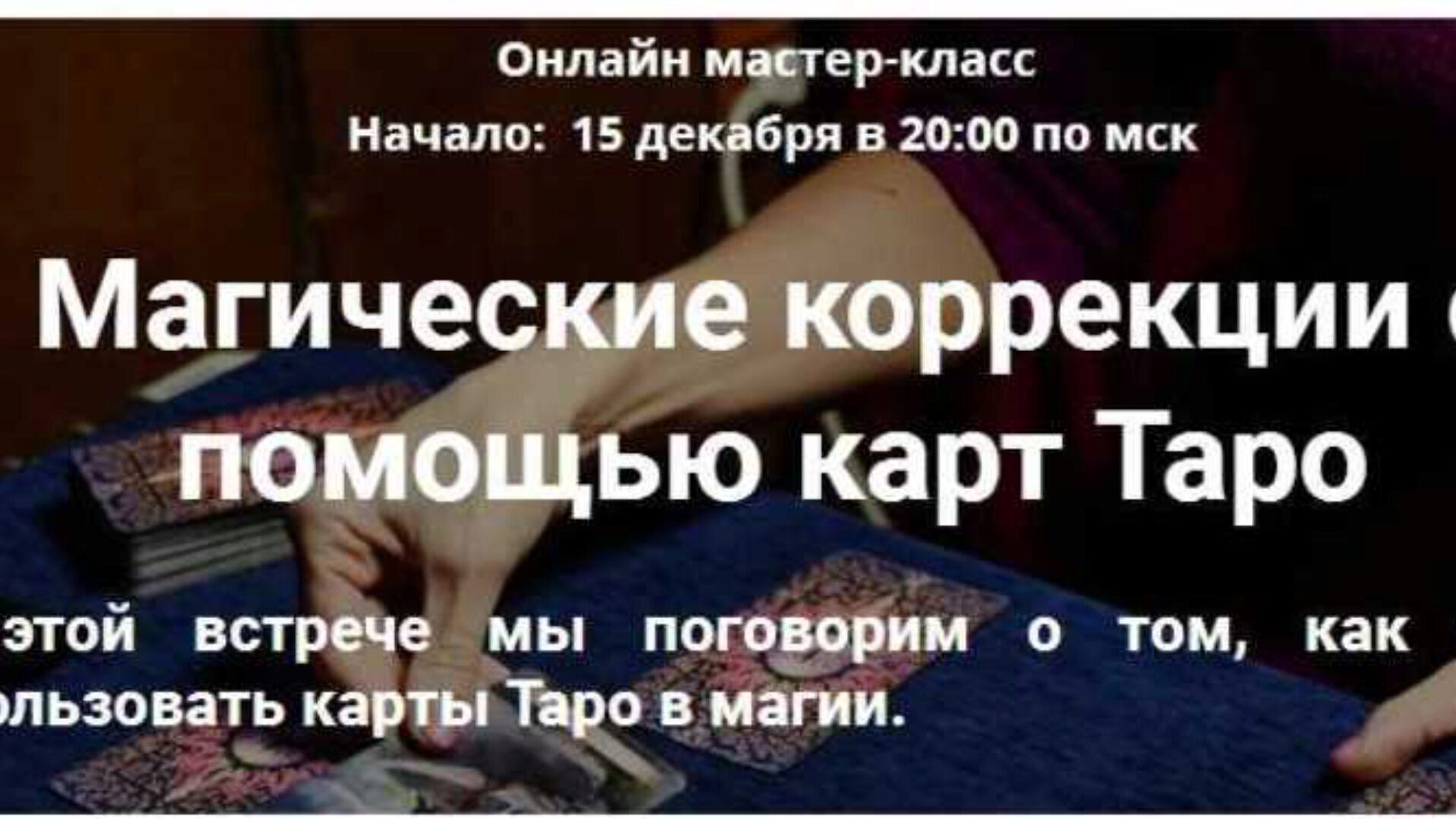 Магические коррекции на Таро 5 простых, но очень действенных методик по изменению будущего на картах Таро! Описание: Школа Таро Галки Бapaнoвой приглашает вас на обучающий семинар по Магическим коррекциям ситуаций с помощью карт Таро. На семинаре будут даны 5 методик магических коррекций по