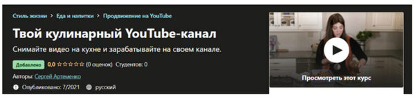 Сергей Артеменко «Твой кулинарный YouTube-канал» — Udemy слив скачать