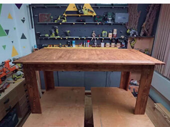 В процее обучения вы сделаете прекрасный стол для дачи из сосны, который удобно перевозить и можно использовать на открытом воздухе.