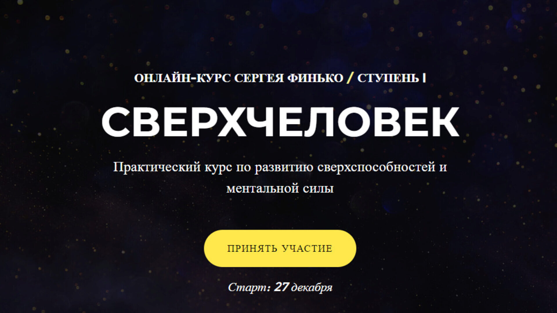 «Сверхчеловек» — это 17-часовой онлайн-курс, который поможет вам расширить границы восприятия мира и развить сверхспособности: сверхслух, ясновидение, яснознание.