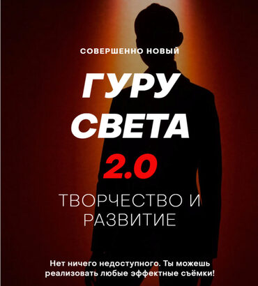 Пакет «Гуру света» 20+ видеоуроков курса 2 полноценные записи мастер-класса «Студийный минимум» Запись Открытого урока «Fashion и Модельные тесты» Видеокурс «Работа со студийным светом. Основы» Видеокурс «Съёмка на циклораме» Видеоурок «Мужской портрет» Видеоурок «Самый творческий свет: «Фонарик и