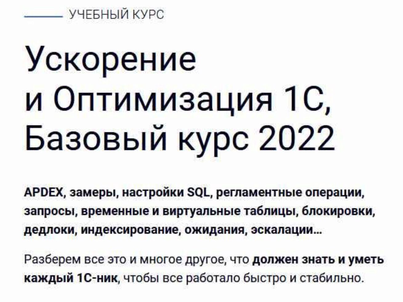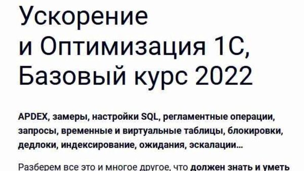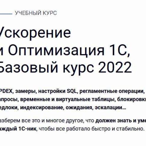 Сергей Кузьмин, Андрей Бурмистров «Ускорение и Оптимизация 1С, Базовый курс 2022» — Курсы -по-1с-рф слив скачать