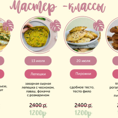 Все 4 - за 4800 р. вместо 9600 р. + бонусные рецепты: безглютеновые пельмени, домашняя паста и английские пироги.