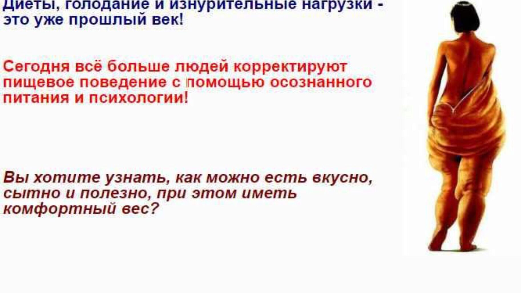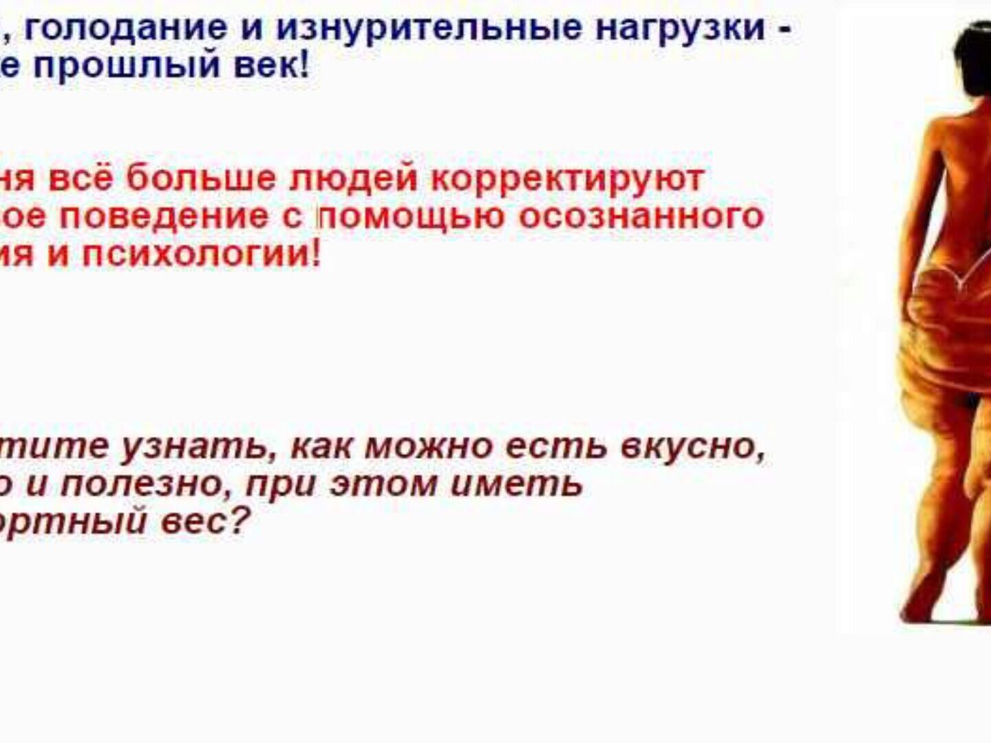 Мы предлагаем вам видеокурс снижения веса, основанный на осознанном питании и психологии, благодаря чему вам не придётся вновь голодать, сидеть на диете, считать калории или всё время беспокоиться о том, что надо есть!