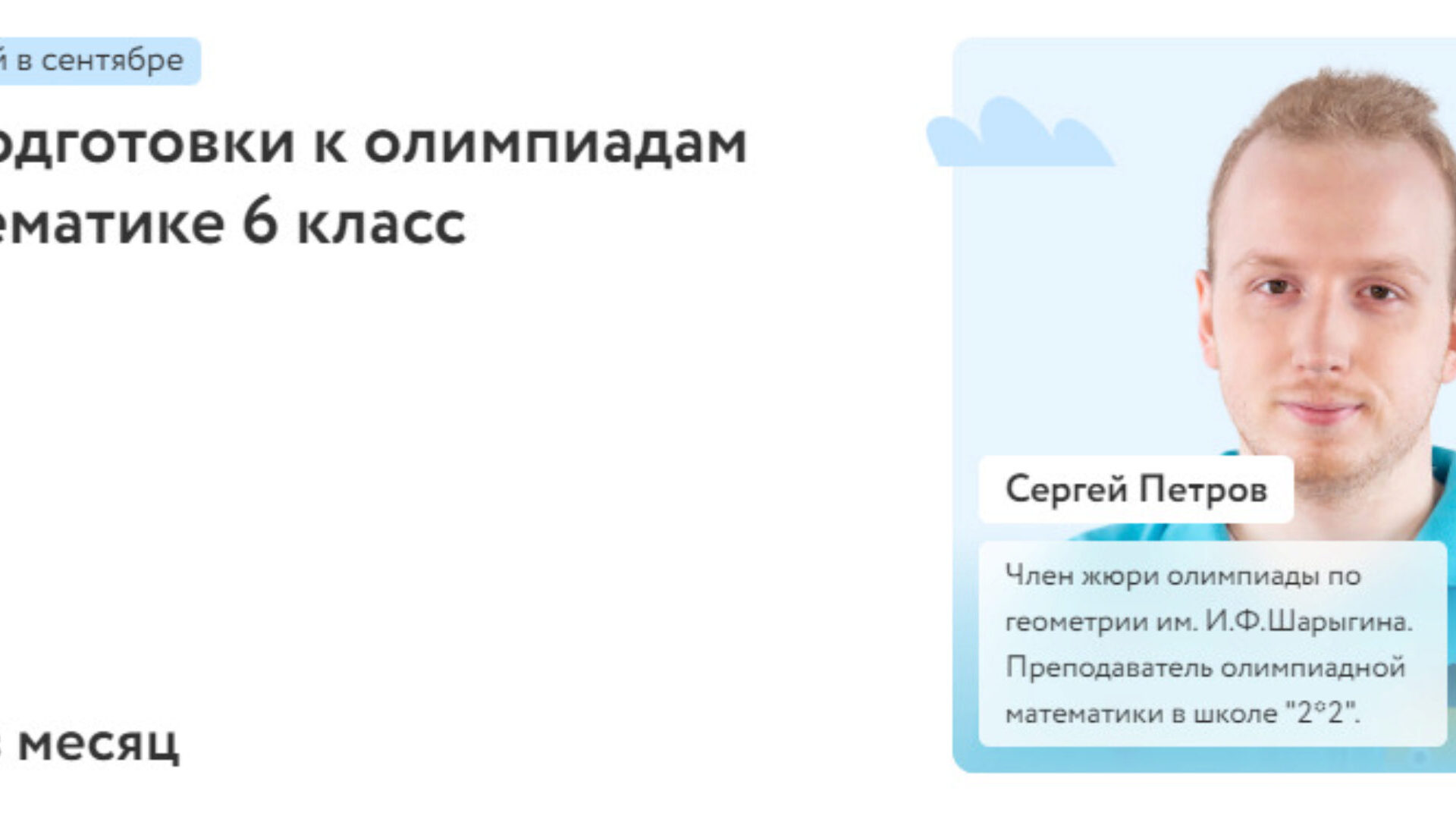 Отзывы о курсе «Курс подготовки к олимпиадам по математике 6 класс 2022» от Сергея Петрова