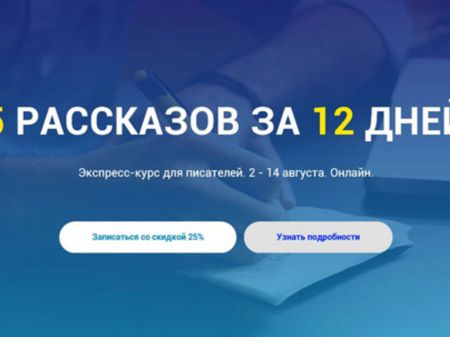 Курс Курсы писательского мастерства - 5 рассказов за 12 дней, автор Сергей Пономарев, Анастасия Кузьменко. Особенность курса