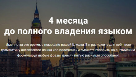 Именно за это время, с помощью нашей Школы, Вы разложите для себя всю грамматику английского языка «по полочкам» и сможете говорить на английским, формулируя любые фразы тремя - пятью разными способами!