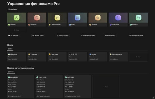 Курс Управление финансами. Шаблон в Notion. Тариф Pro, автор Сергей Соболевский. Управляйте и отслеживайте свои финансы в одном месте. Контролируйте свои доходы и расходы с помощью шаблона управления финансами в Notion.