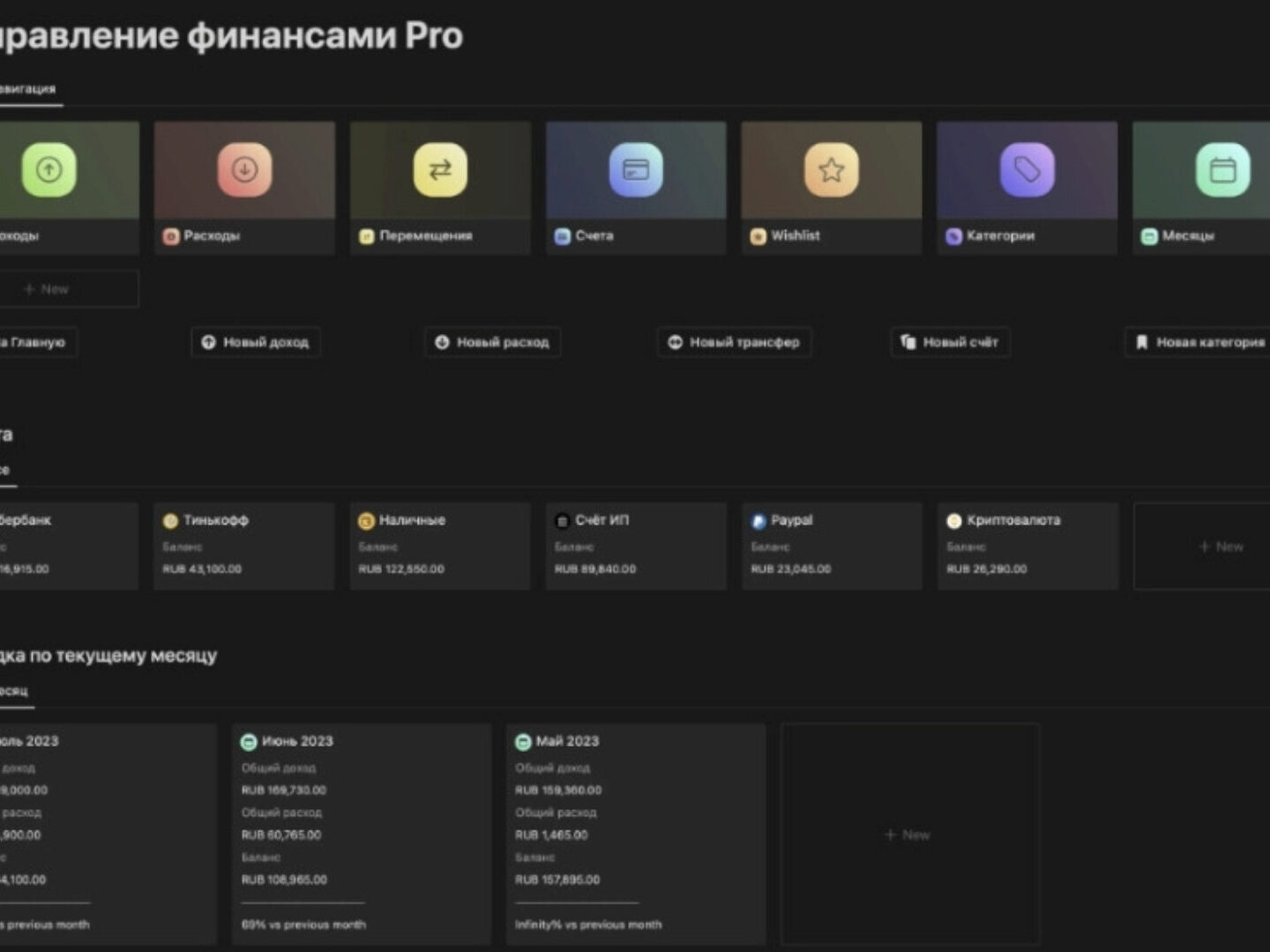 Управляйте и отслеживайте свои финансы в одном месте. Контролируйте свои доходы и расходы с помощью шаблона управления финансами в Notion.