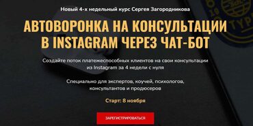 Сергей Загородников «Автоворонка на консультации в instagram через чат-бот» слив скачать