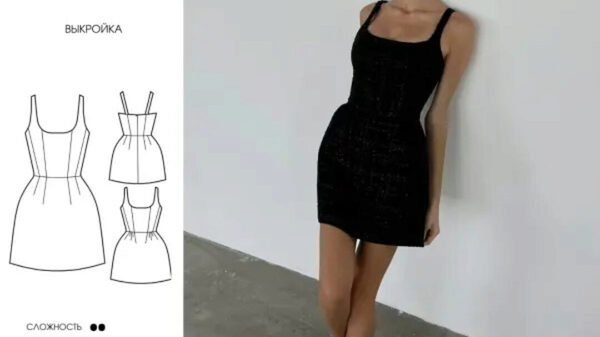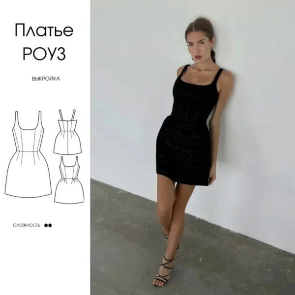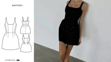 Выкройка женского коктейльного платья-мини на бретелях. Глубокое декольте и плотно прилегающий лиф визуально делают зону декольте эффектнее.