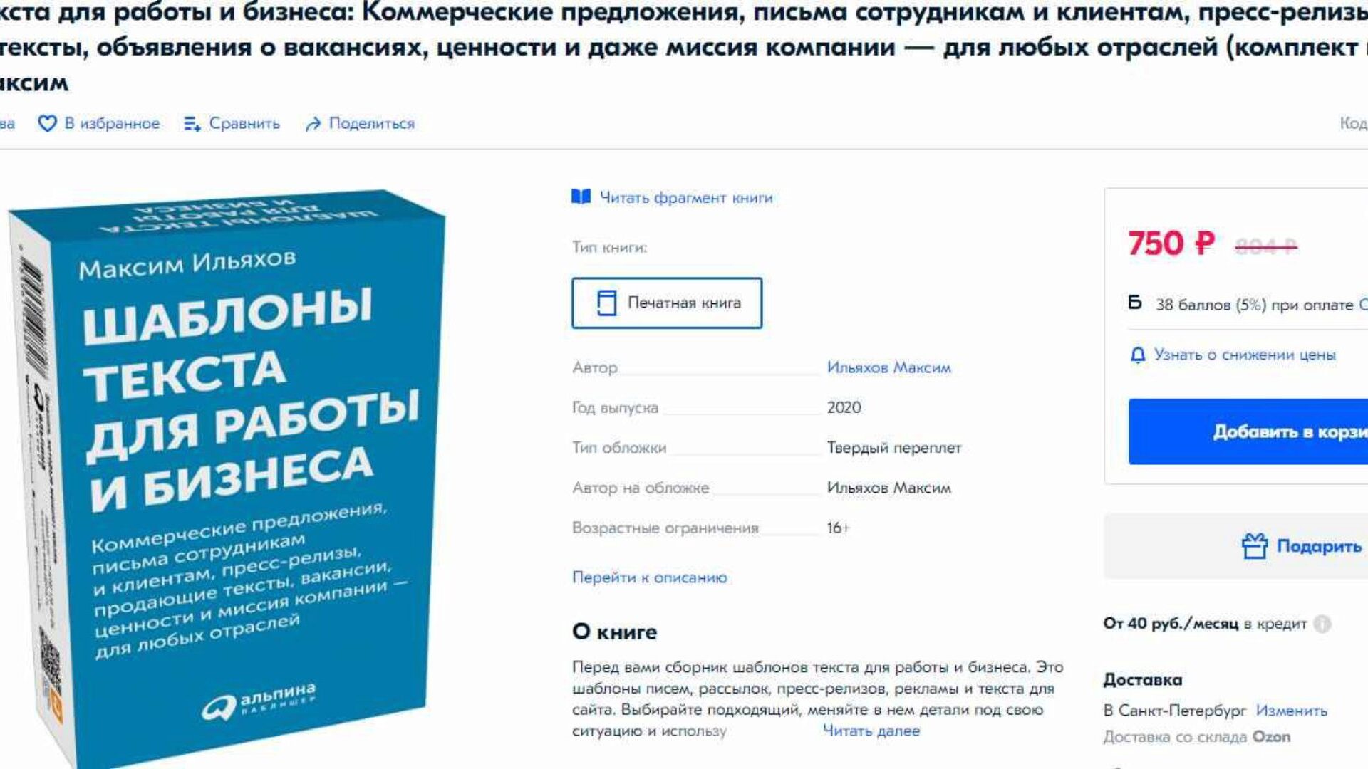 Шаблоны текста для работы и бизнеса. Коммерческие предложения, письма сотрудникам и клиентам, пресс-релизы, продающие тексты. 2020 [Максим Ильяхов] слив скачать