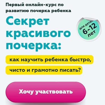 Процесс изучения и проработки мною этих причин вылился в достаточно эффективный онлайн-тренинг для детей 6-12 лет «Секрет красивого почерка: как научить ребенка быстро, чисто и грамотно писать».