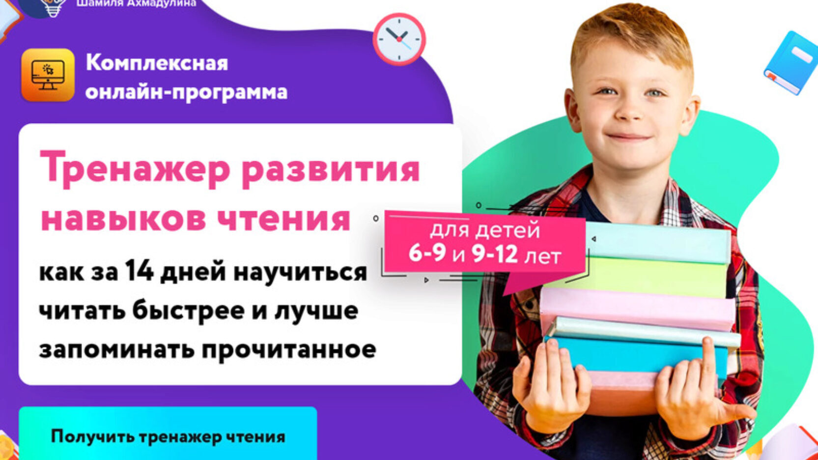 Помочь ребенку полюбить чтение списка литературы летом и школьных параграфов в течение учебного года поможет наш 14-дневный экспресс-тренажер скорочтения для детей.