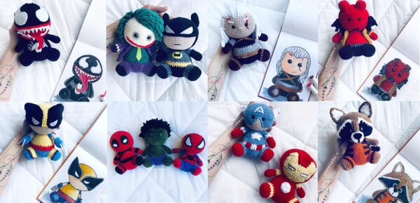 Тор (подробный мастер-класс), Капитан Америка, Железный Человек, Халк, Дедпул, Человек-Паук, Танос, Бэтмен, Локи, Хэллбой, Джокер, Харли Квинн, Росомаха, Супермен, Енот Ракета, Черная Вдова, Доктор Стрэндж, Флеш, Вижн, Чудо-женщина, Веном, Грут.