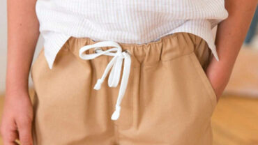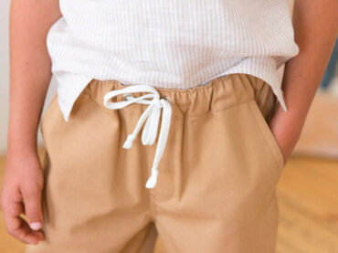Шорты малого объема. Пояс цельнокроеный, с эластичной тесьмой, находится на естественной линии талии. Низ обработан ролевым швом. Длина шорт выше середины бедер. Для пошива шорт подойдут трикотажные полотна. Материал должен быть средней плотности, мягкий и приятный телу, высокоэластичный