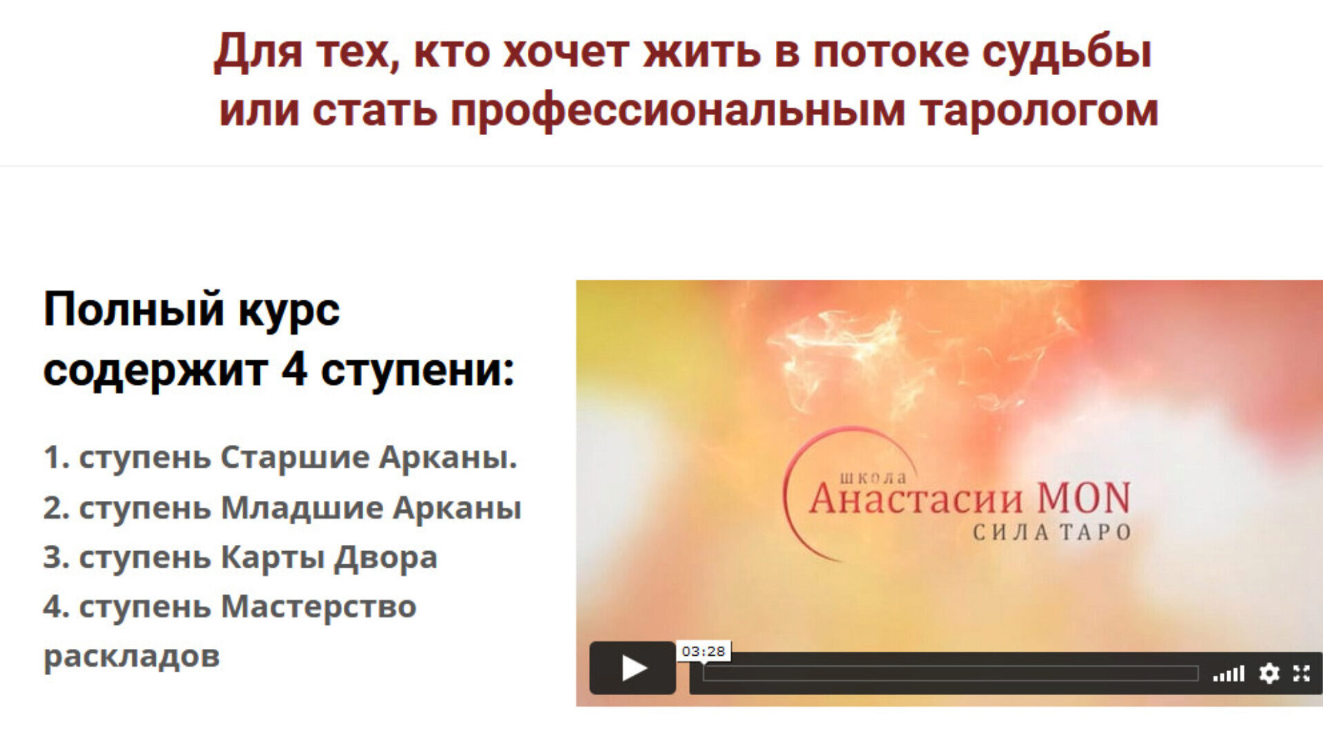 Школа Анастасии MON «Обучающий курс Таро» слив скачать