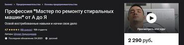 Этот курс направлен на то, чтобы слушатель получил всю необходимую информацию и навыки, для начала своего пути в новой профессии. Автор делится своим опытом, пошагово обучая ремонту стиральных машин, от алгоритма ее работы до ремонта электроники.