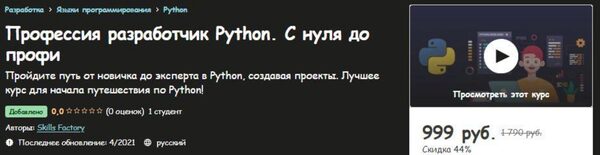 Отзывы о курсе [Udemy] Профессия разработчик Python. С нуля до профи (Skills Factory)