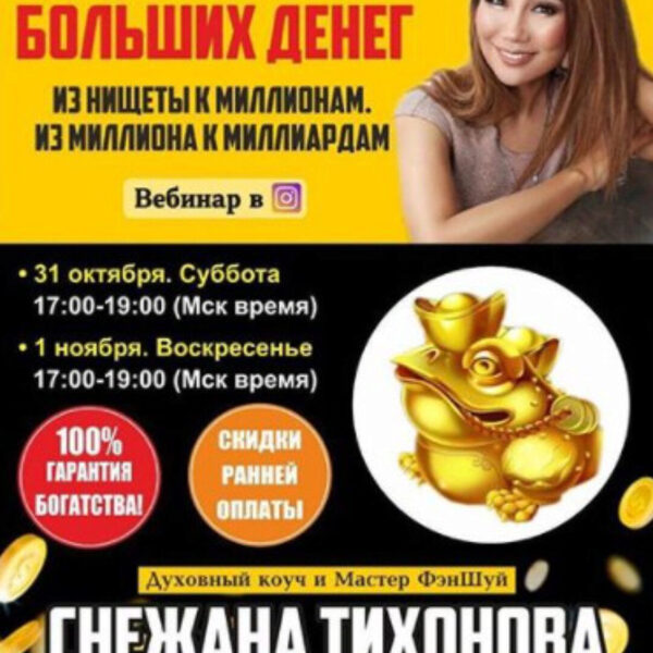 Курс Фэн-шуй больших денег, автор Снежана Тихонова. NEW Совершенно новый курс духовного коуча и самого загадочного Мастера ФэнШуй Снежаной Тихоновой