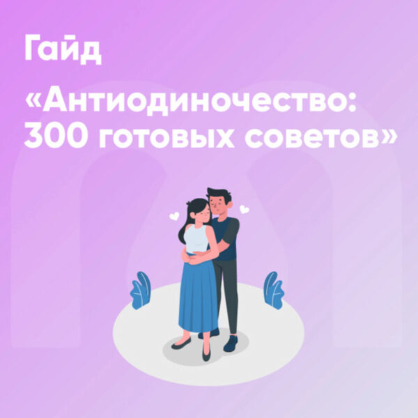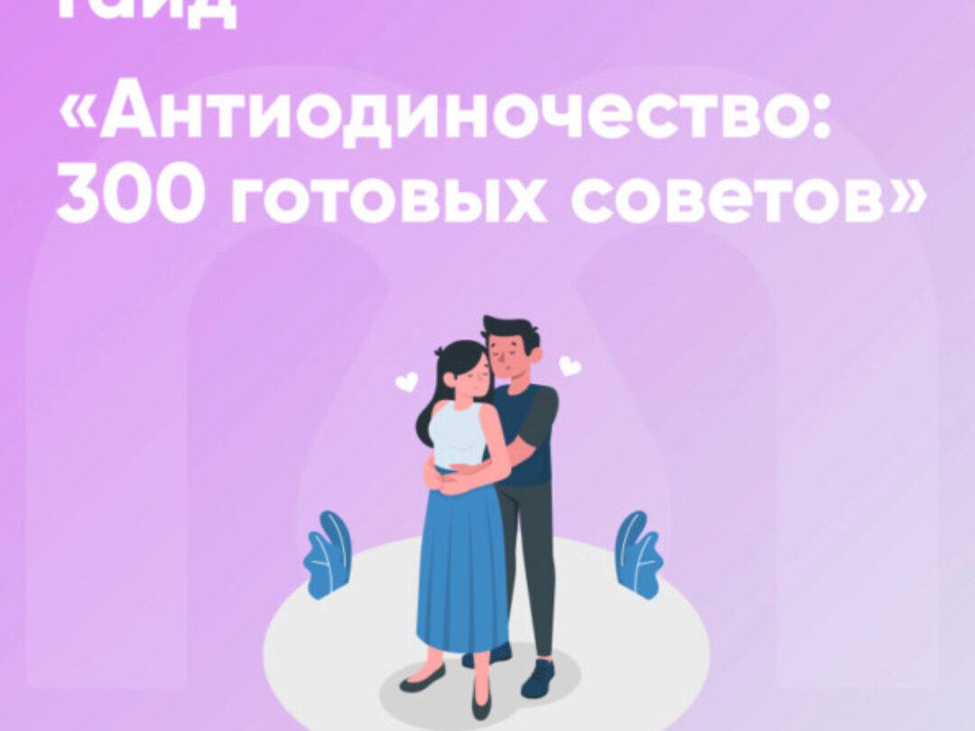 Гайд «Антиодиночество» – это мини продукт с советами на разные случаи в процессе поиска отношений. Конкретные идеи для «здесь и сейчас». Не является терапевтическим продуктом.