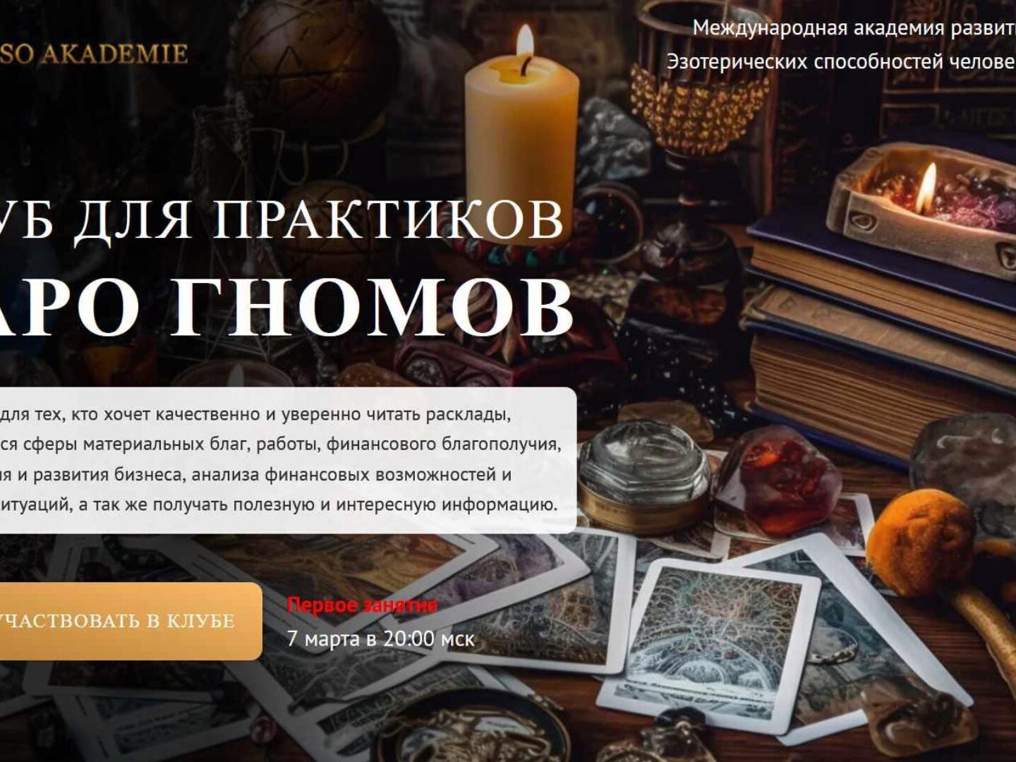 Курс Клуб для практиков Таро Гномов. 1 занятие, автор София Вюрстлин. Клуб для практиков ТАРО ГНОМОВ