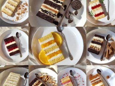 1. Морковный торт со сметанным муссом морковный бисквит молочная пропитка сливочная соленая карамель сметанный мусс крем сметанный 2. Торт Банановый смузи банановый бисквит пропитка на сгущенном молоке банановое кремю карамельный ганаш сырный крем с белым шоколадом 3. Торт Малиновый пунш нежный