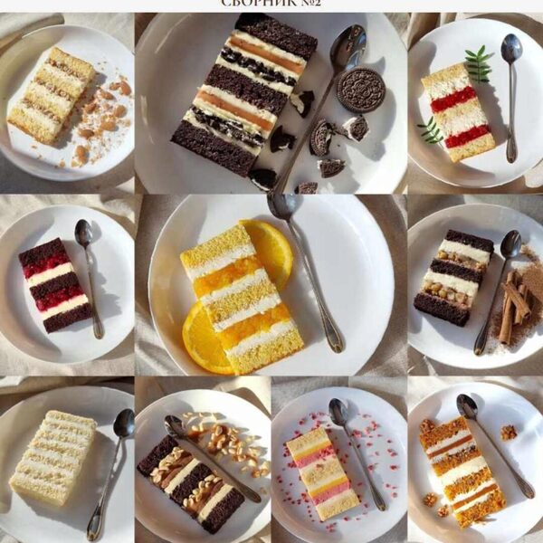 Каждая рецептурная карта — подробное руководство по приготовлению торта с нуля. Она представляет собой текстовый документ, который содержит рецепт с подробно описанной техникой приготовления. Муссовые торты: Клубника-фисташка Фисташковый с малиной Апельсин-морковь Яблочный пирог Сникерс