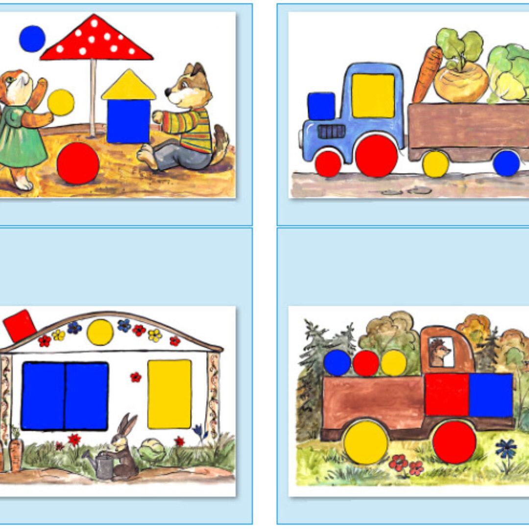 Раздаточный материал включает в себя 12 листов. Материал предназначен для использования одним ребёнком и расположен на отдельных листах. (На каждого ребёнка необходимо распечатать по одному раздаточному листу).