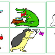 - Конспекты разбиты на несколько тематических блоков (животные, фрукты, овощи, одежда и т.д.) К каждой теме прилагаются 2 набора карточек (большие карточки - для введения новых слов и маленькие – для различных игр).