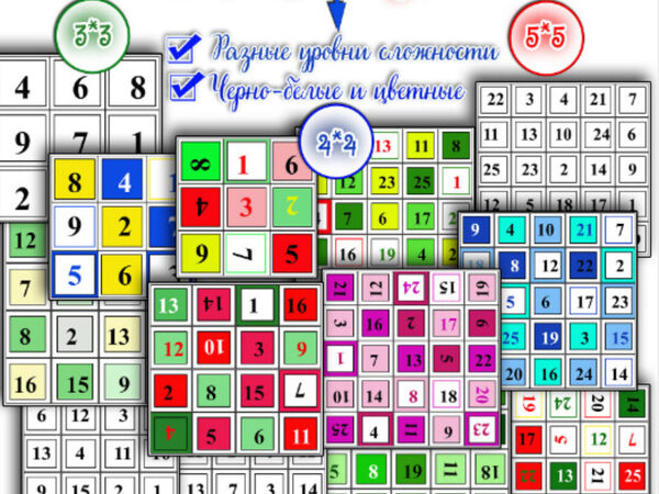 - 3 уровня сложности: - простые, разноцветные, с перевёрнутыми числами.