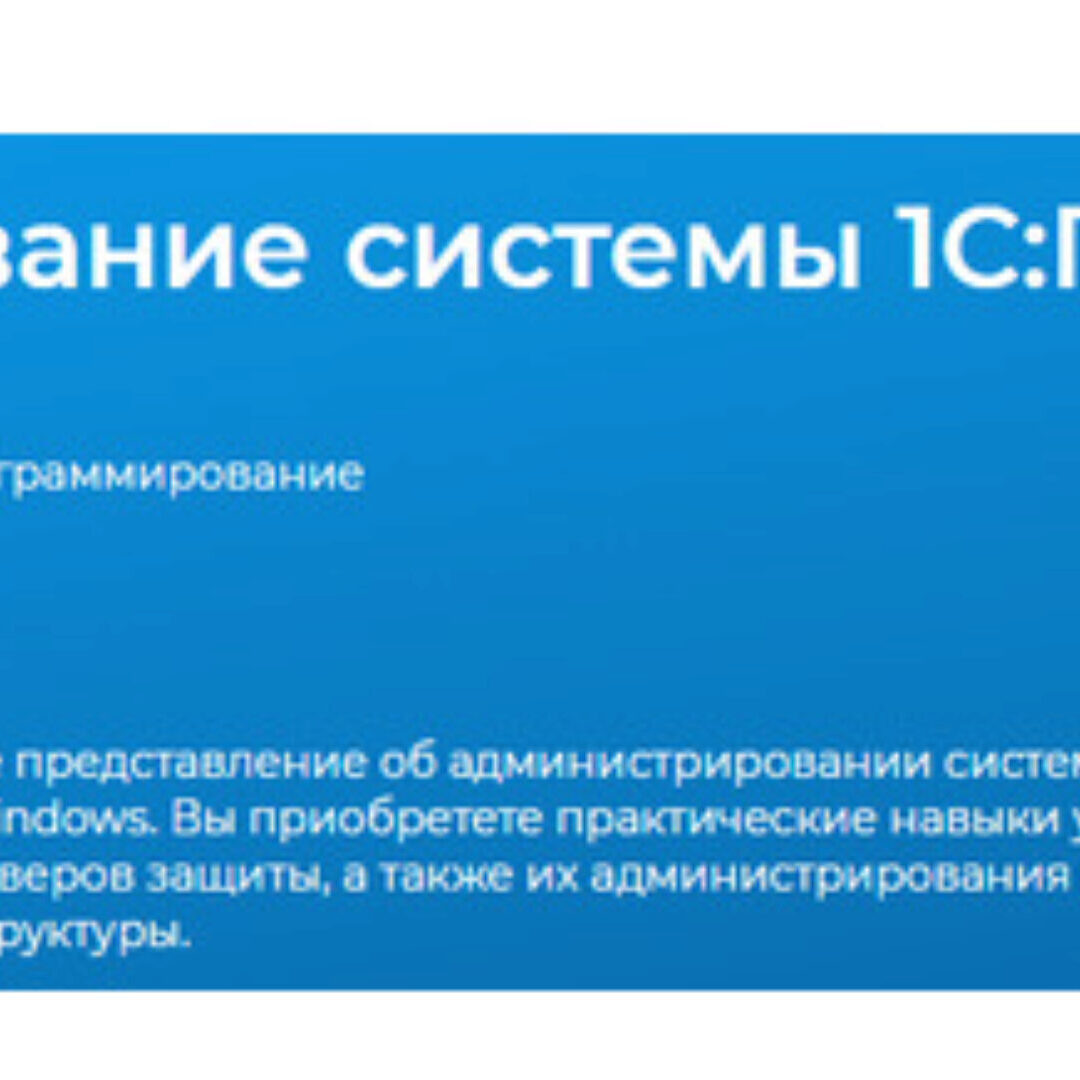 Данный курс посвящен популярной в России ERP – системе «1С: Предприятие». В связи с возросшей в последние годы популярностью системы в компаниях, использующих данный продукт, появилась новая роль – «Администратор 1С». Курс призван подготовить специалистов, обладающих соответствующими навыками.