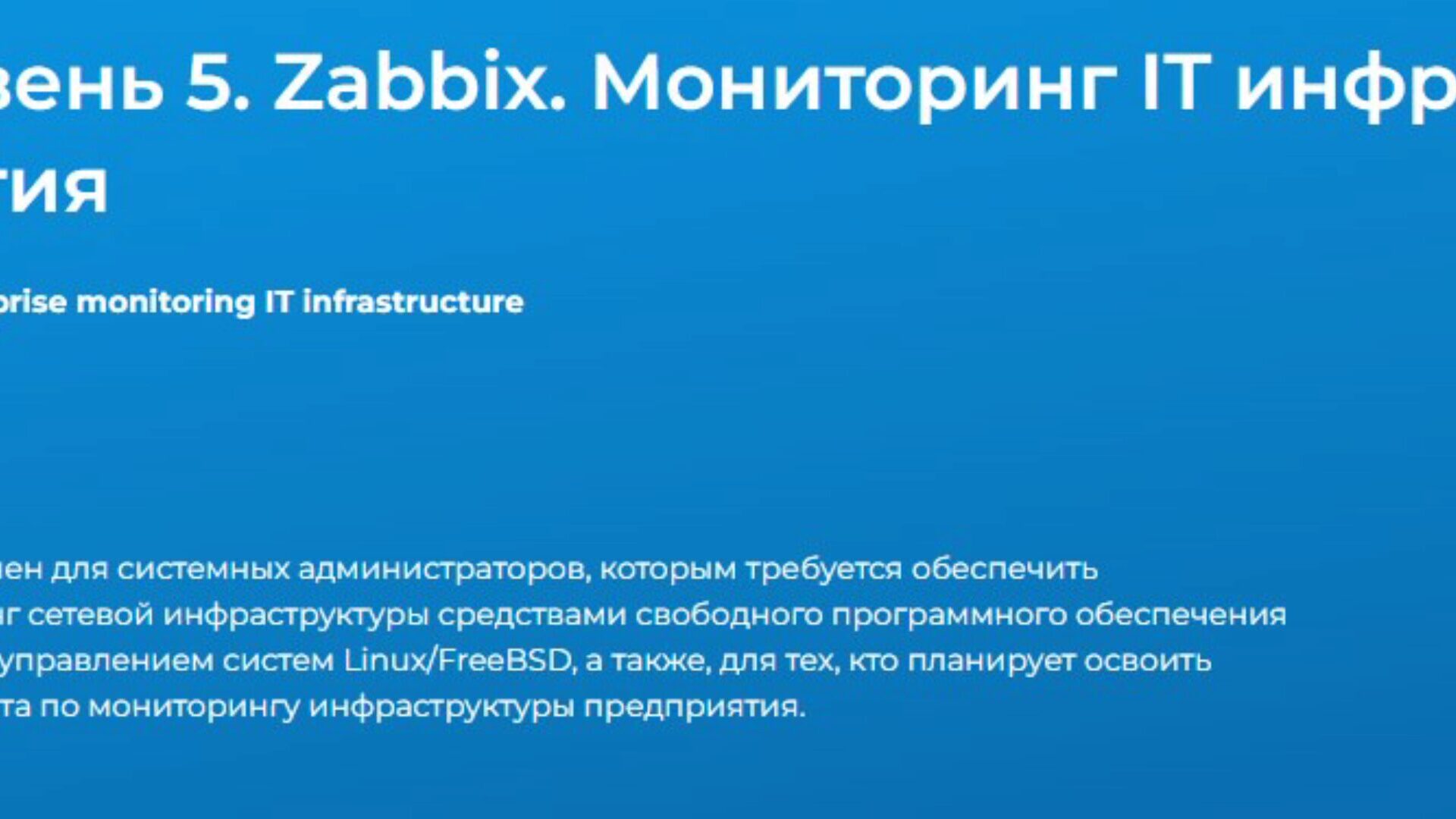[Специалист] Linux. Уровень 5. Zabbix. Мониторинг IT инфраструктуры предприятия слив скачать