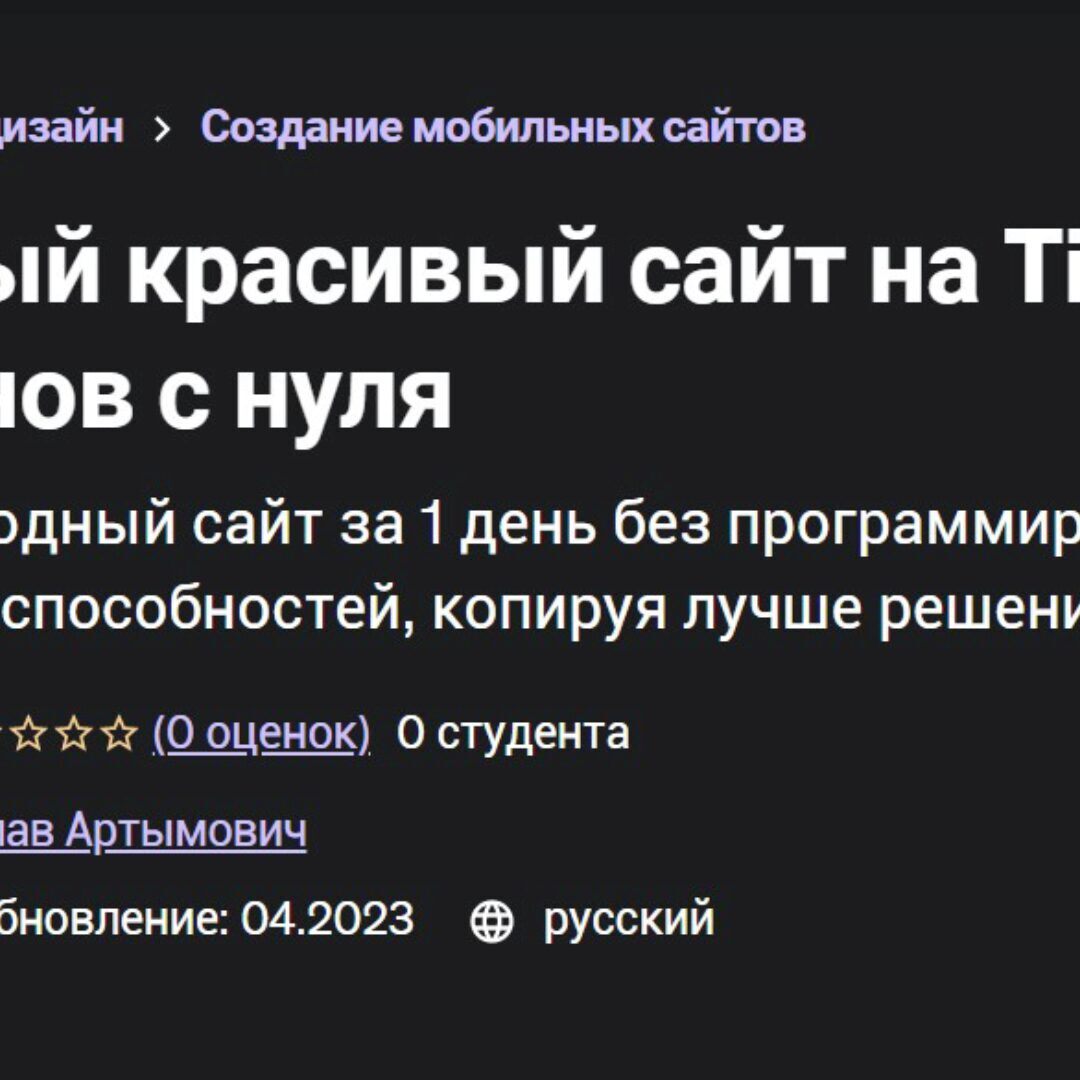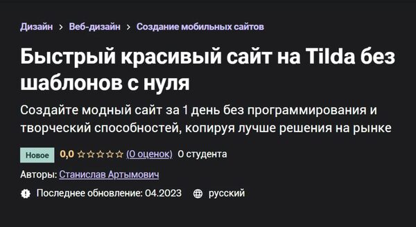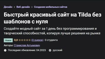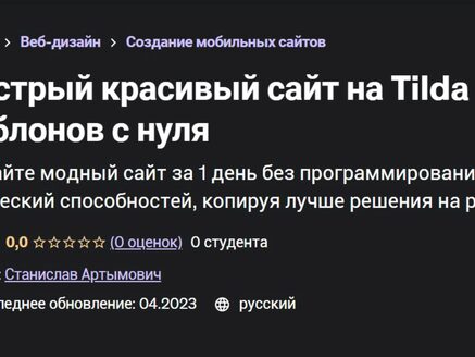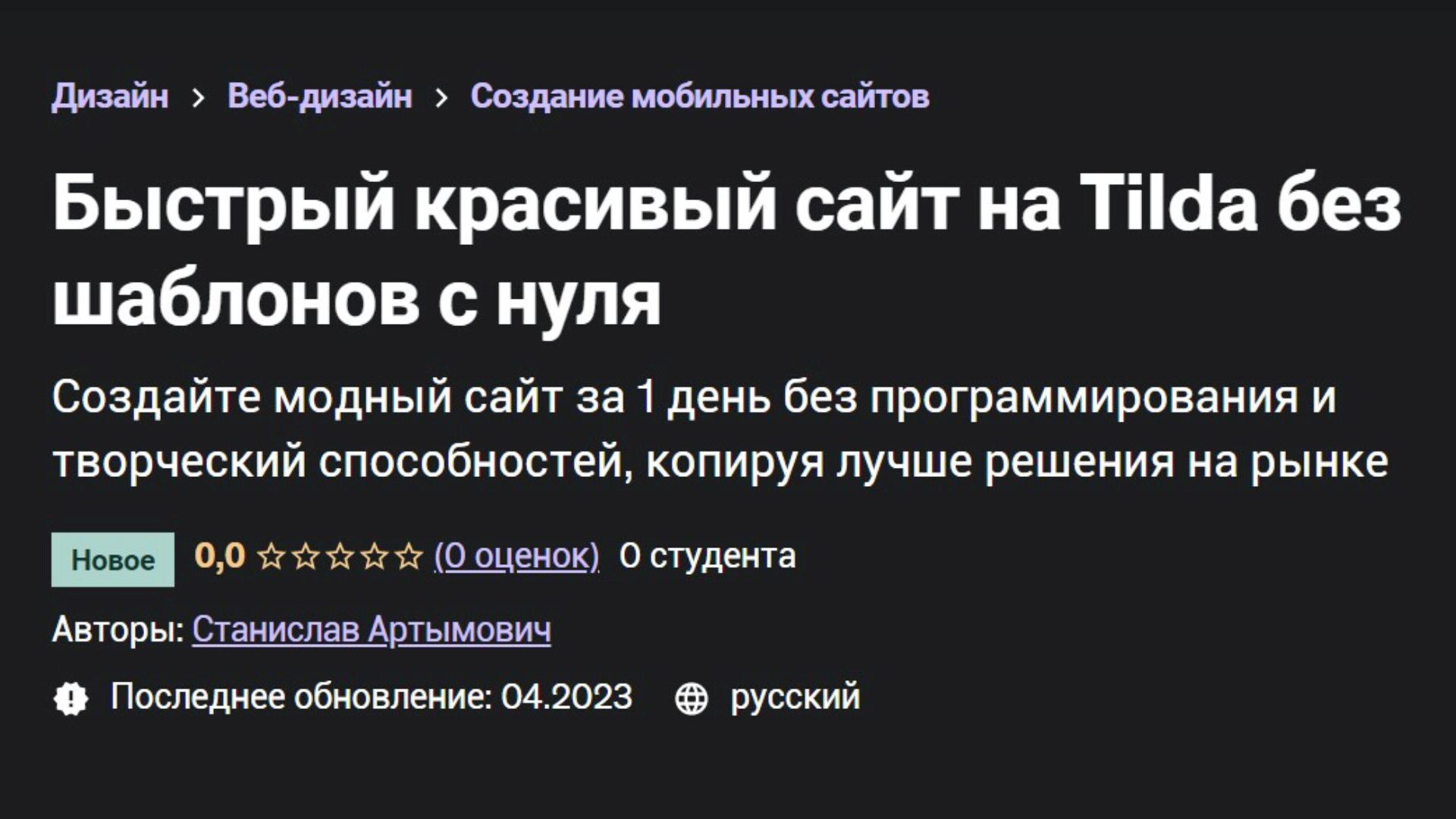 Станислав Артымович «Быстрый красивый сайт на Tilda без шаблонов с нуля» — Udemy слив скачать