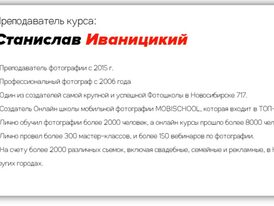 Курс Mobischool - Научись делать красивые фото на камеру телефона. Без куратора, автор Станислав Иваницикий. Результаты обучения:
