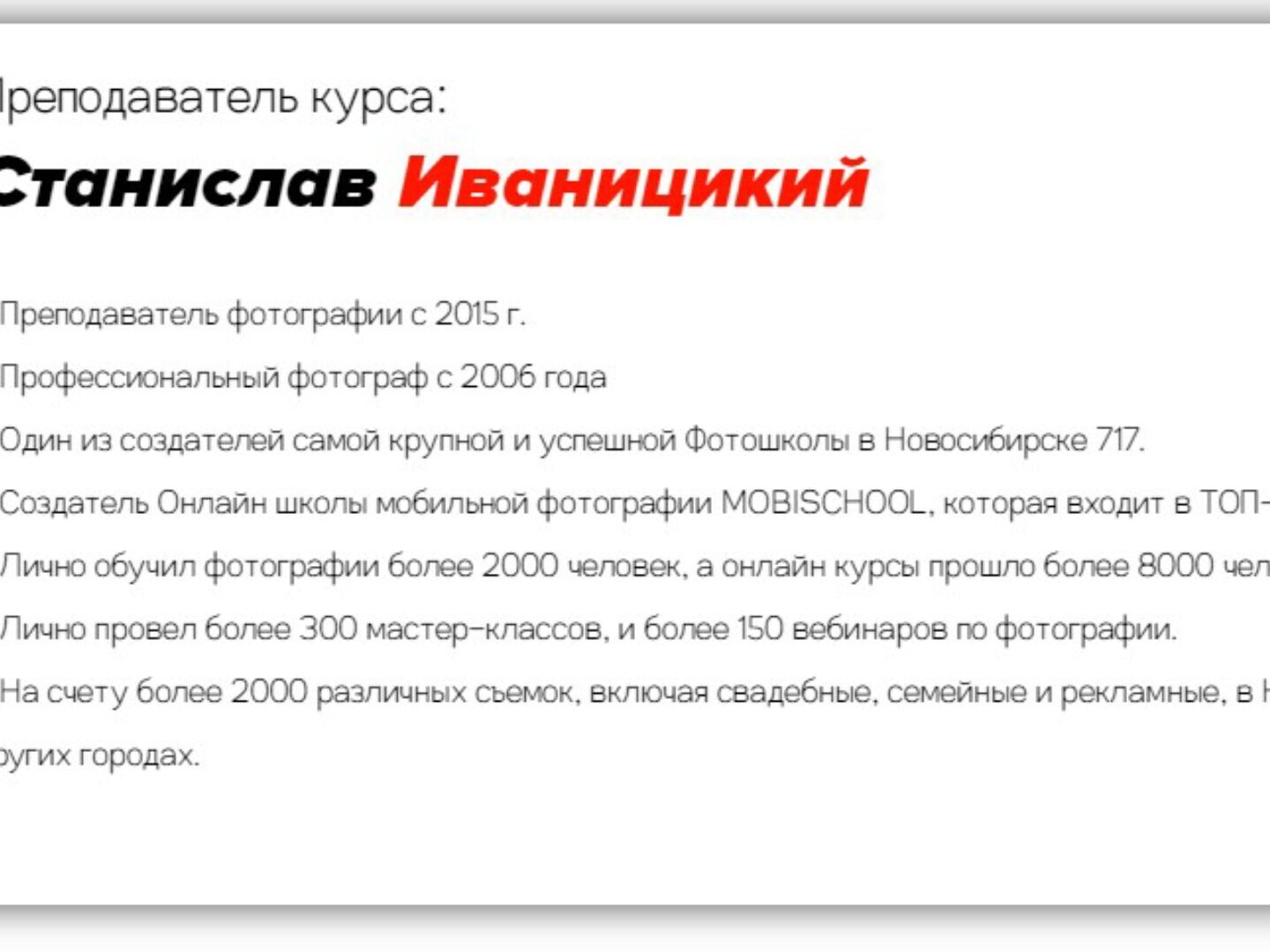 Отзывы о курсе «Научись делать красивые фото на камеру телефона. Без куратора» от Станислава Иваницикого
