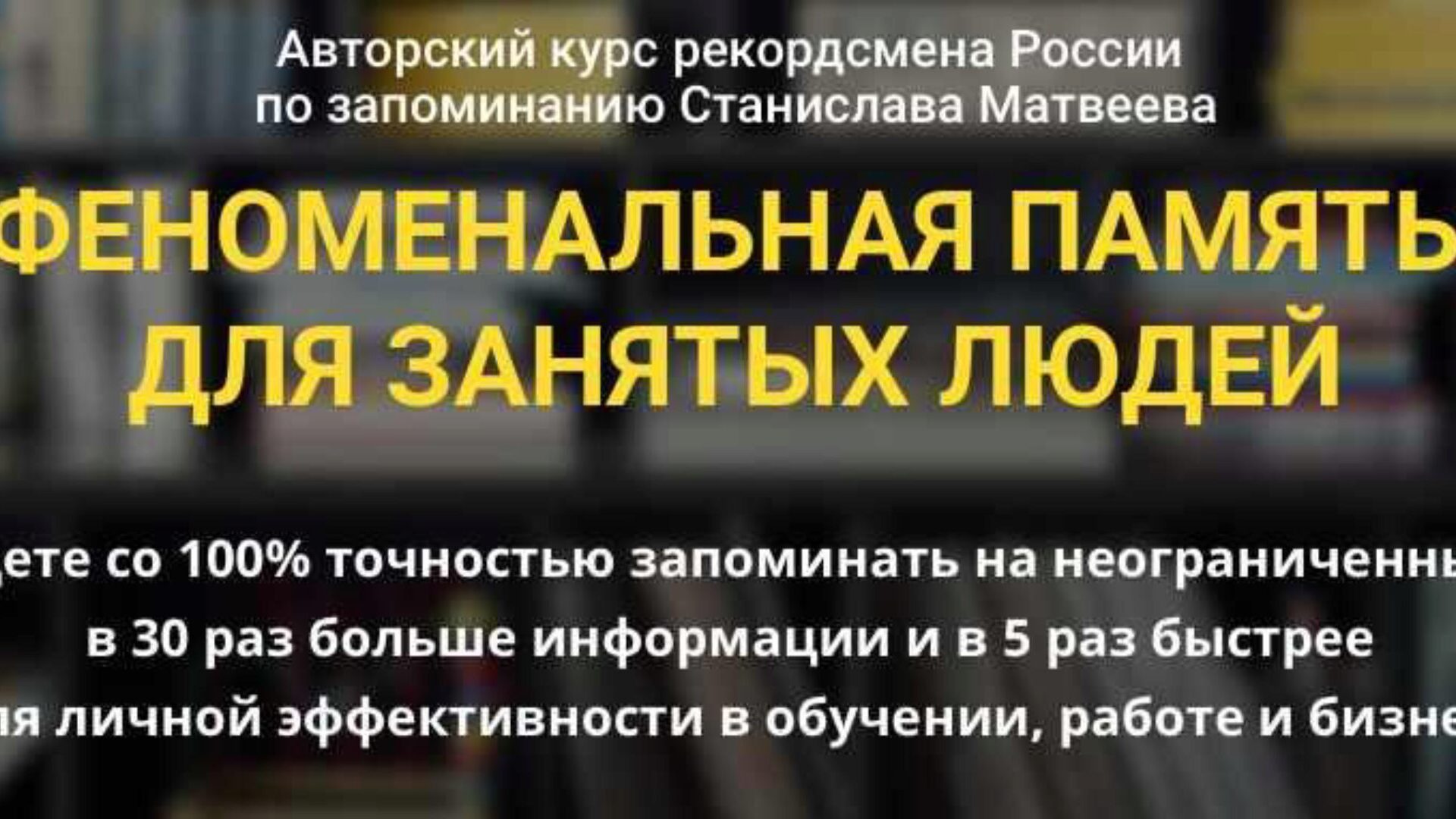 Станислав Матвеев «Феноменальная память для занятых людей» слив скачать