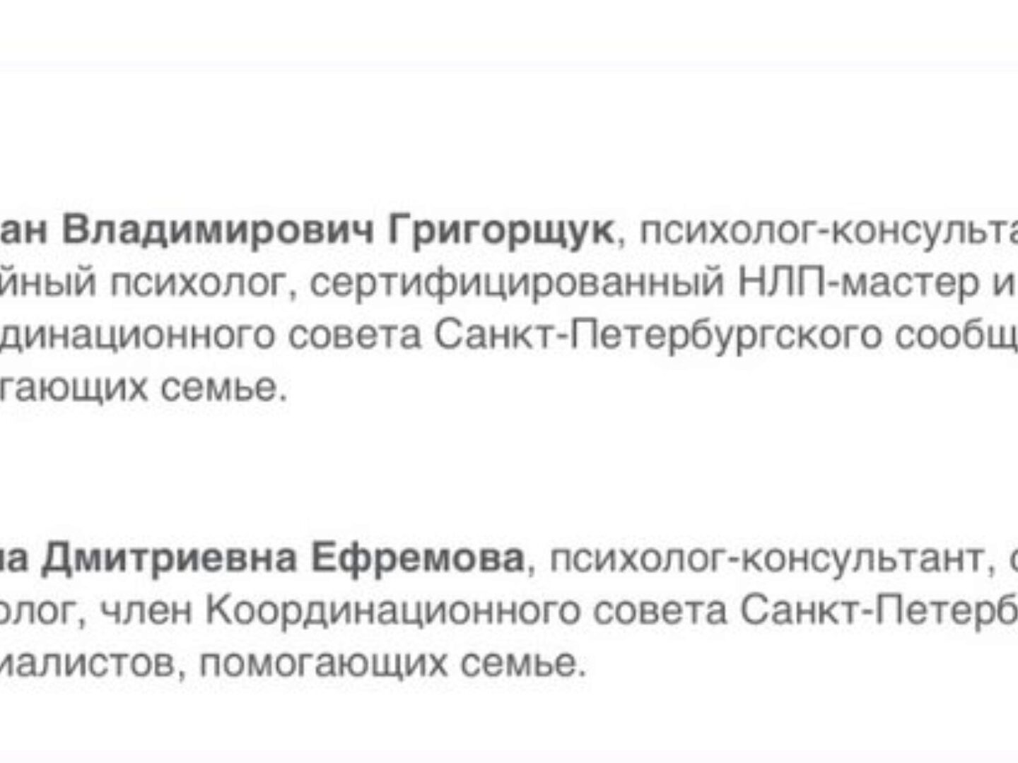 Степан Владимирович Григорщук, психолог-консультант, системный семейный психолог, сертифицированный НЛП-мастер и НЛП-тренер, член Координационного совета Санкт-Петербургского сообщества специалистов, помогающих семье.